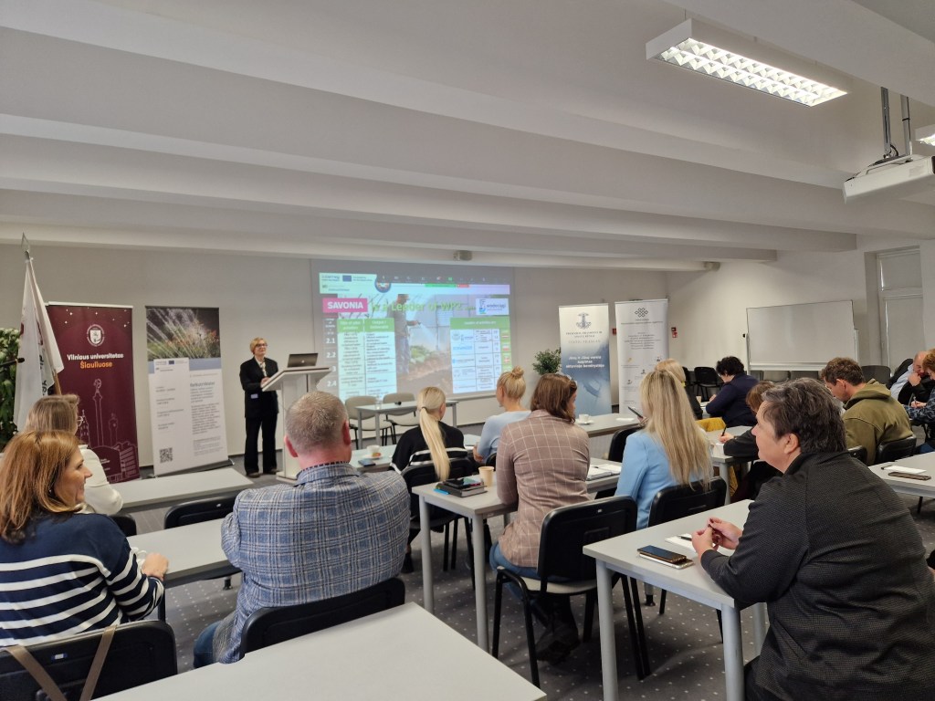 Daiva Jonuškienė, Šiaulių prekybos pramonės ir amatų rūmų atstovė, pristatė partnerių įgyvendinamų pilotų (bandymų) progresą ir iššūkius, su kuriais teko susidurti norint tinkamai pasiruošti jų įgyvendinimui.